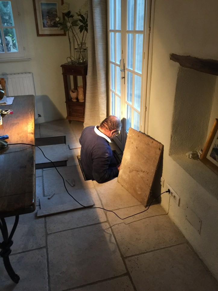 Which included a trip to a neighbouring village to buy the parts he needed, and for two calls to our place and his time to repair it (not including the one hour chatting time we enjoyed with him) – he estimated two hours …and charged €70.