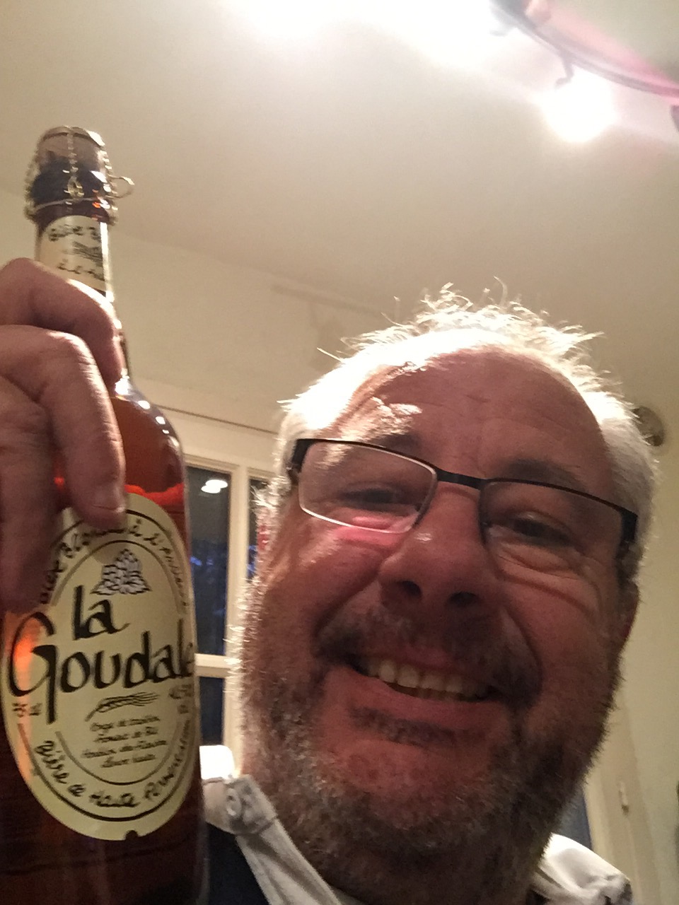 This is a photo of Mick last night after he knew Bob would be back to repair the heater today. He was very happy and opened one of his (new) favourite beers.