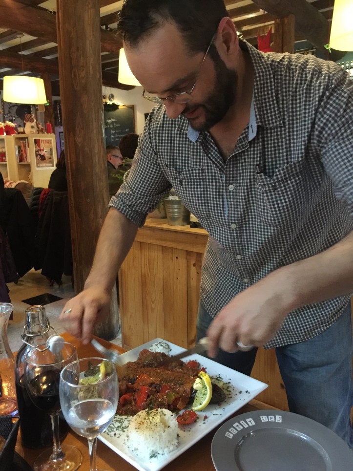 I chose the local trout caught just outside the door (or so he told us) by this gentleman, who boned the fish for me at our table 😀.
