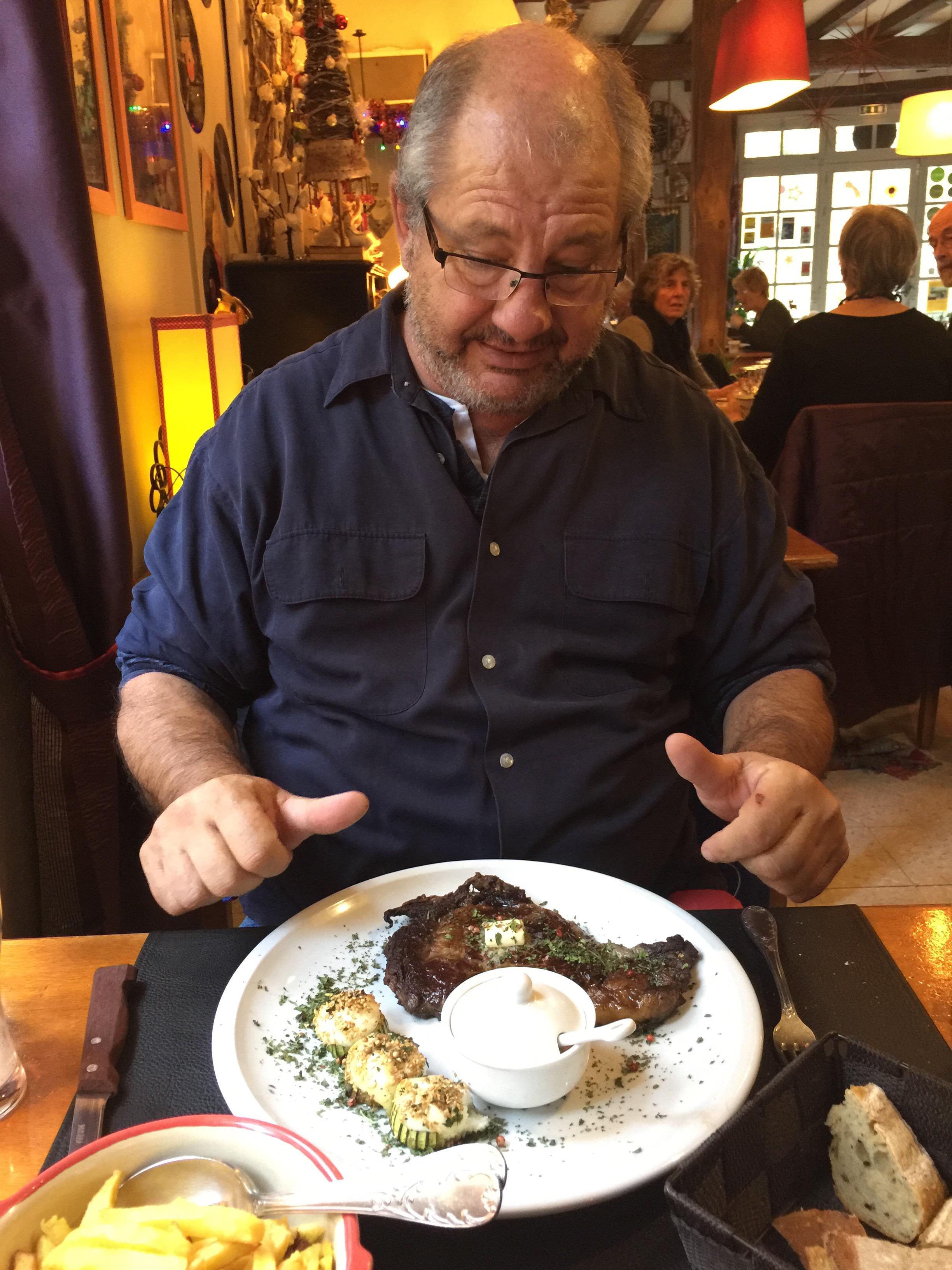 The salad with jambon Serrano and dried duck would have done him but then came the entrecôte and frites.
