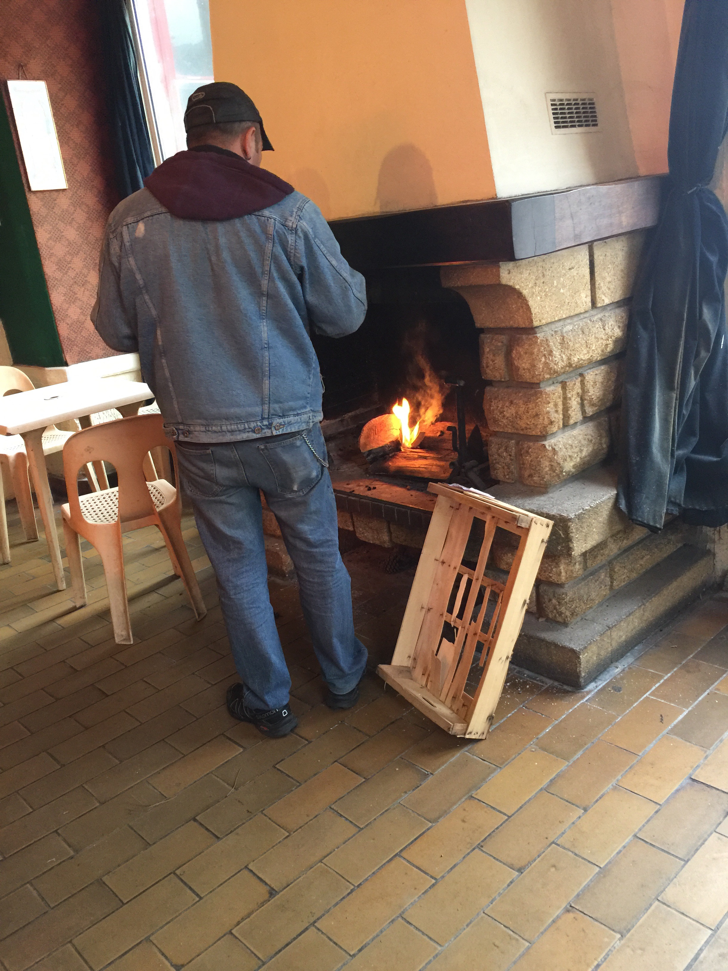 I was freezing in there but one of the locals was trying hard to warm the place up by burning wooden boxes. 🔥