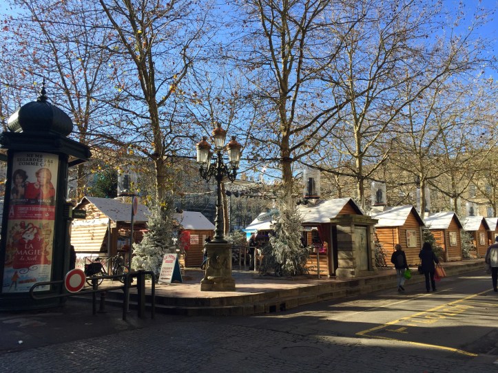 The centre of town was filled with the same little cabins we had seen in Perpignan which were open selling hot wine plus cold wine and beer and other Christmas goodies. There were quite a few people buying bottles of wine to share at 11am. This Christmas fair was fancier than Perpignan’s though because it had one of these.