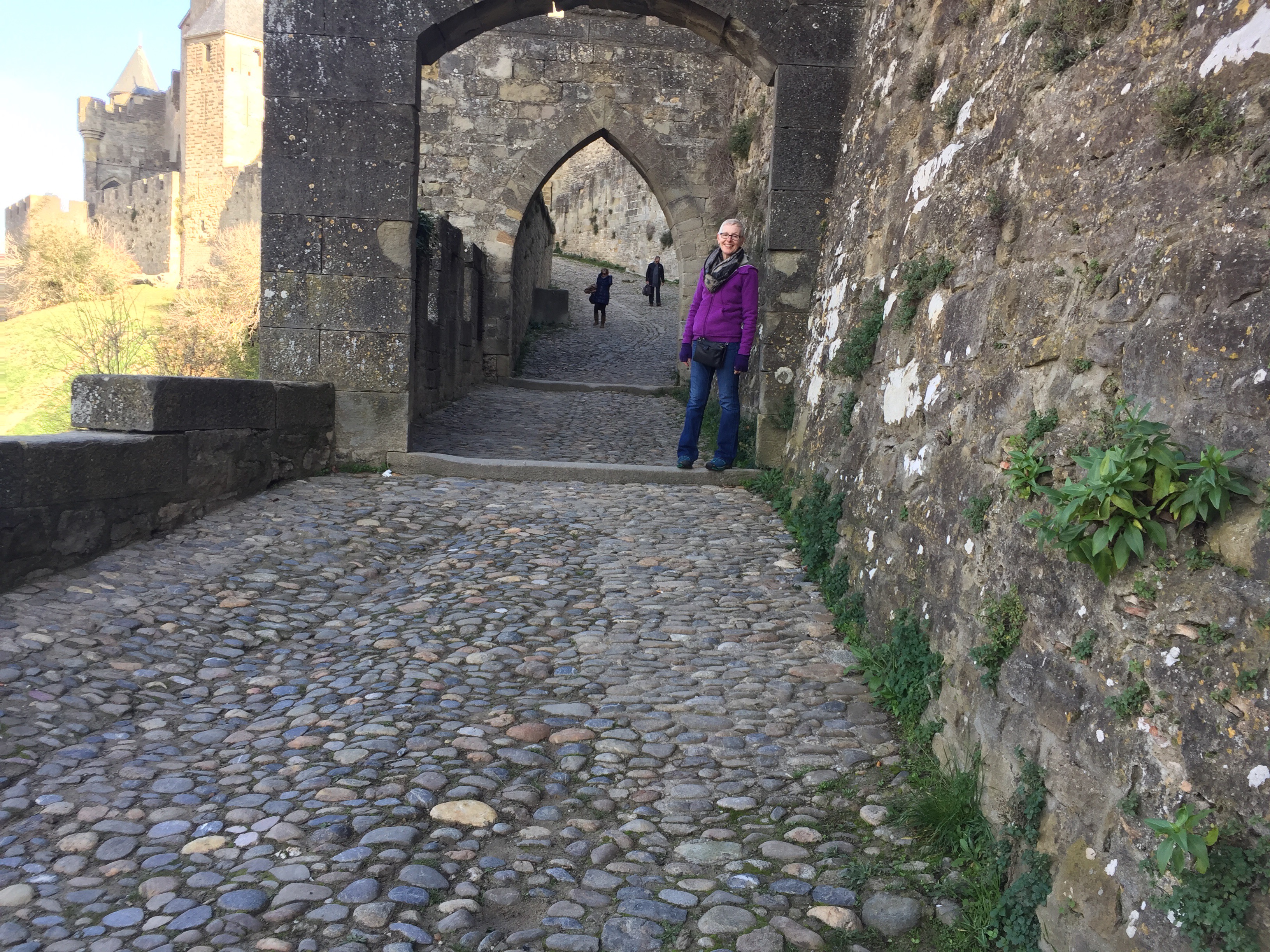 ….. we walked up through the Aude Gate, one of two gates to the Medieval City …..