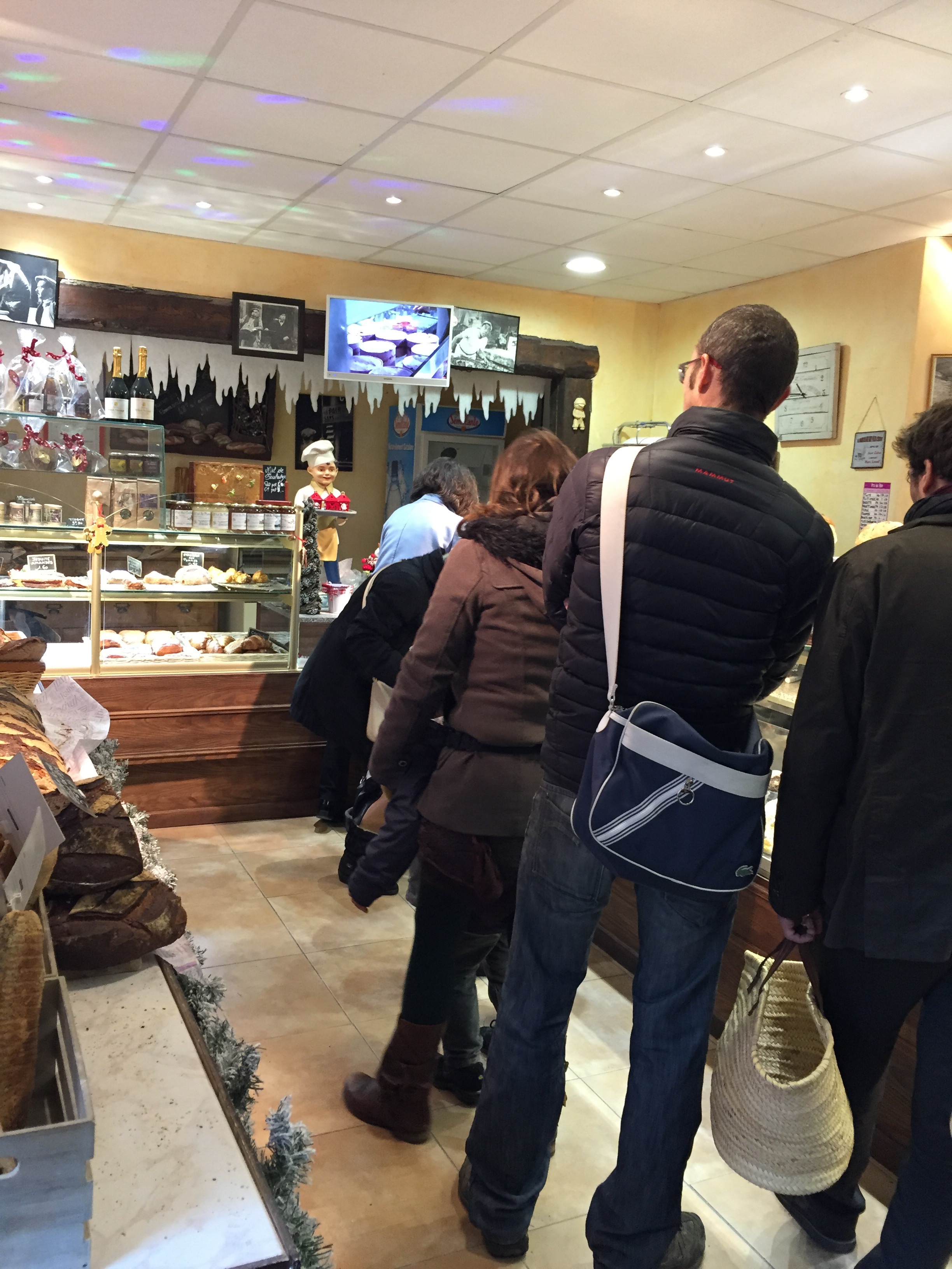 We had visited this boulangerie last week where we had bought our usual loaf – Baguette Rustiqe for €1.05. Today there was a line up to get in. When I took this photo there would have been another dozen people behind us.