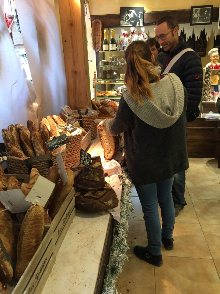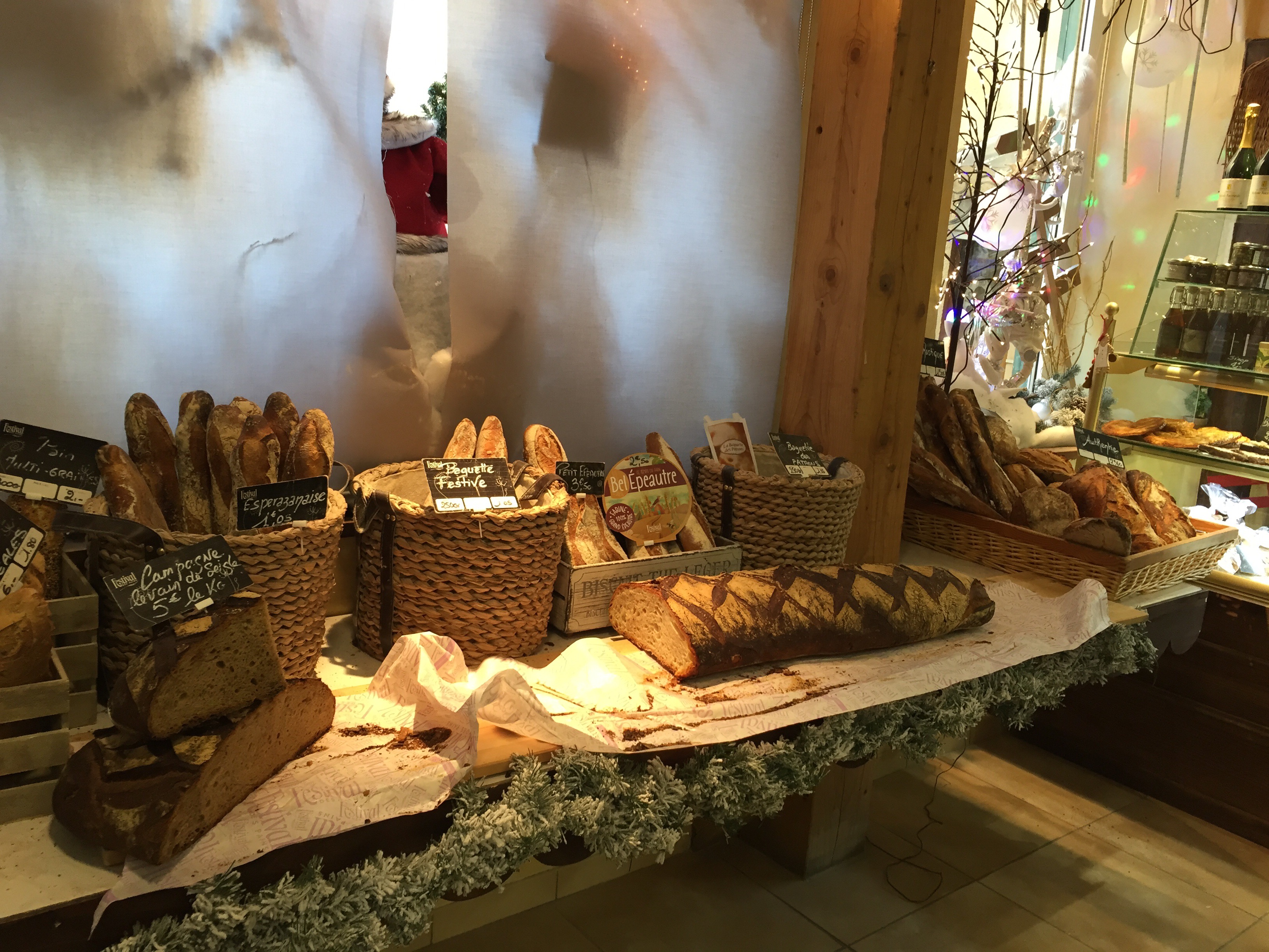 Mick cleverly thought to say “la même chose” and pointed to the lady in front of us who had bought about a kilo and had had it sliced. With a baguette and a croissant as well as our hunk of bread, I received change from €5. Not bad.