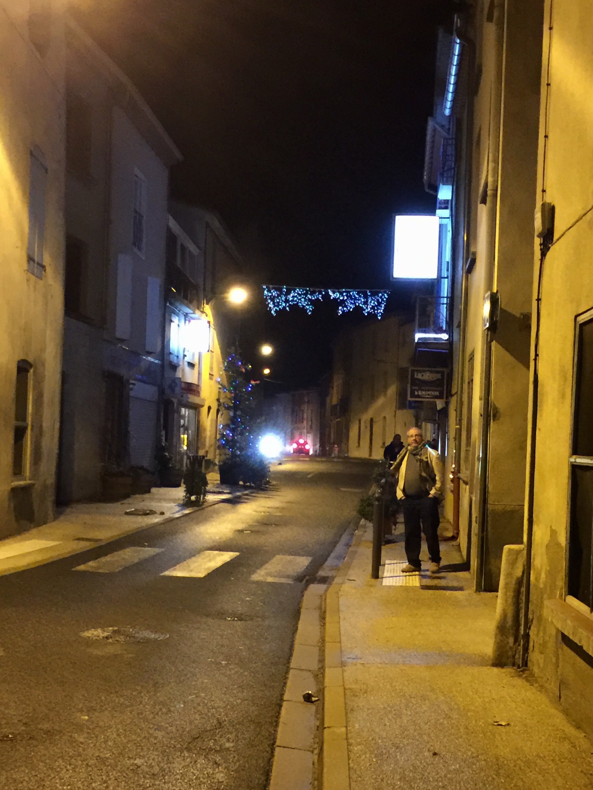 At 7pm, the streets weren’t very busy. By the way, that road is a major road, typical of the villages around here – three pedestrian stripes. That could be a new method of determining the width of streets I’ve just invented. Admittedly, this particular section involves taking turns to get through. If there are no traffic lights, you flash your lights to invite a car through.