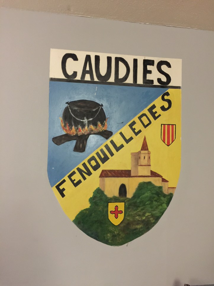 Apparently 600 people live in Caudiès and of the four English-speaking couples we have met, none has ever been to the restaurant. This coat of arms is painted on the wall of the restaurant.