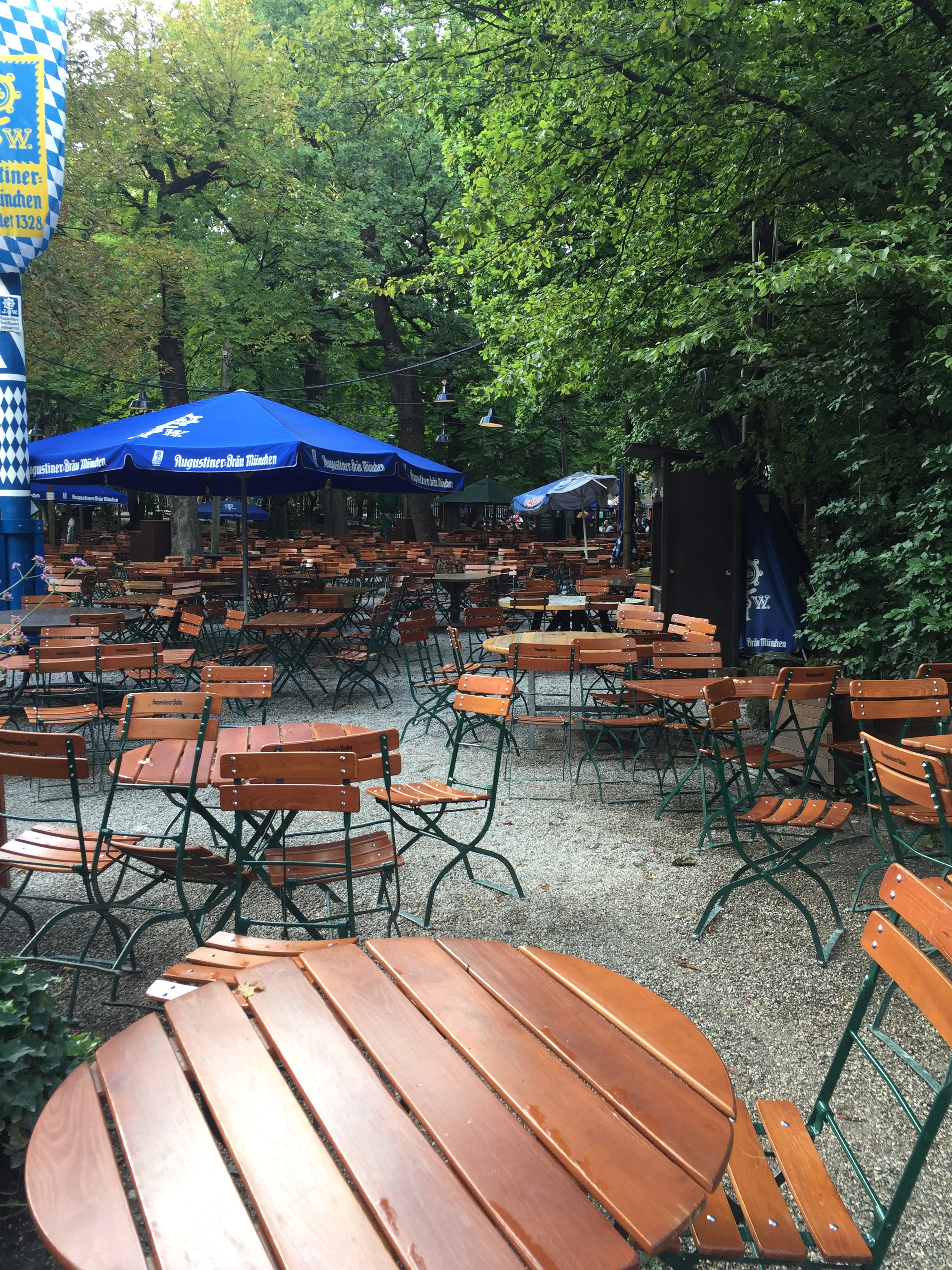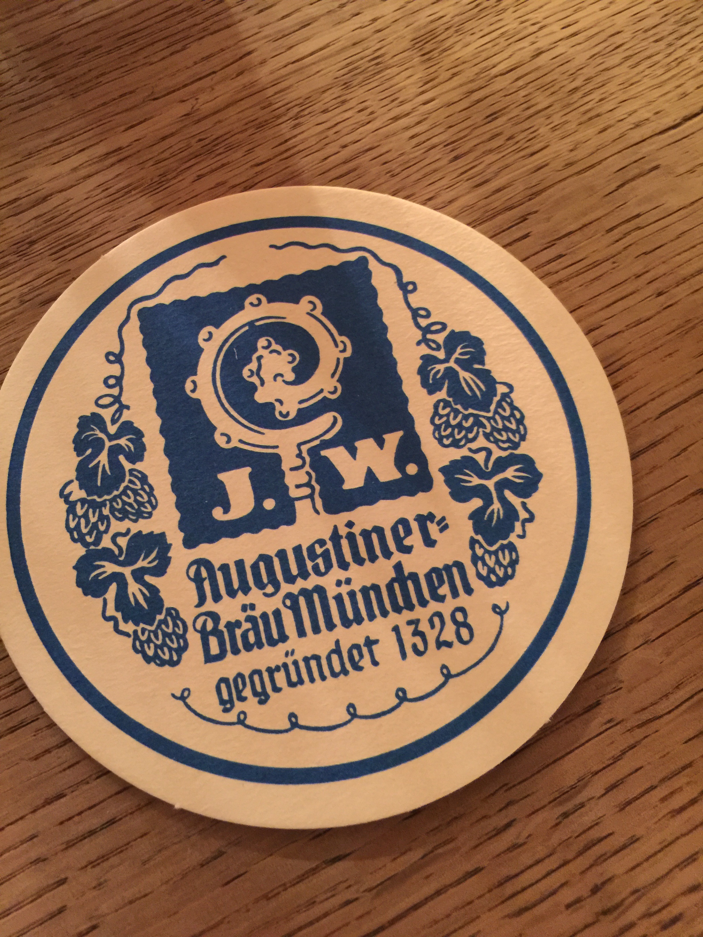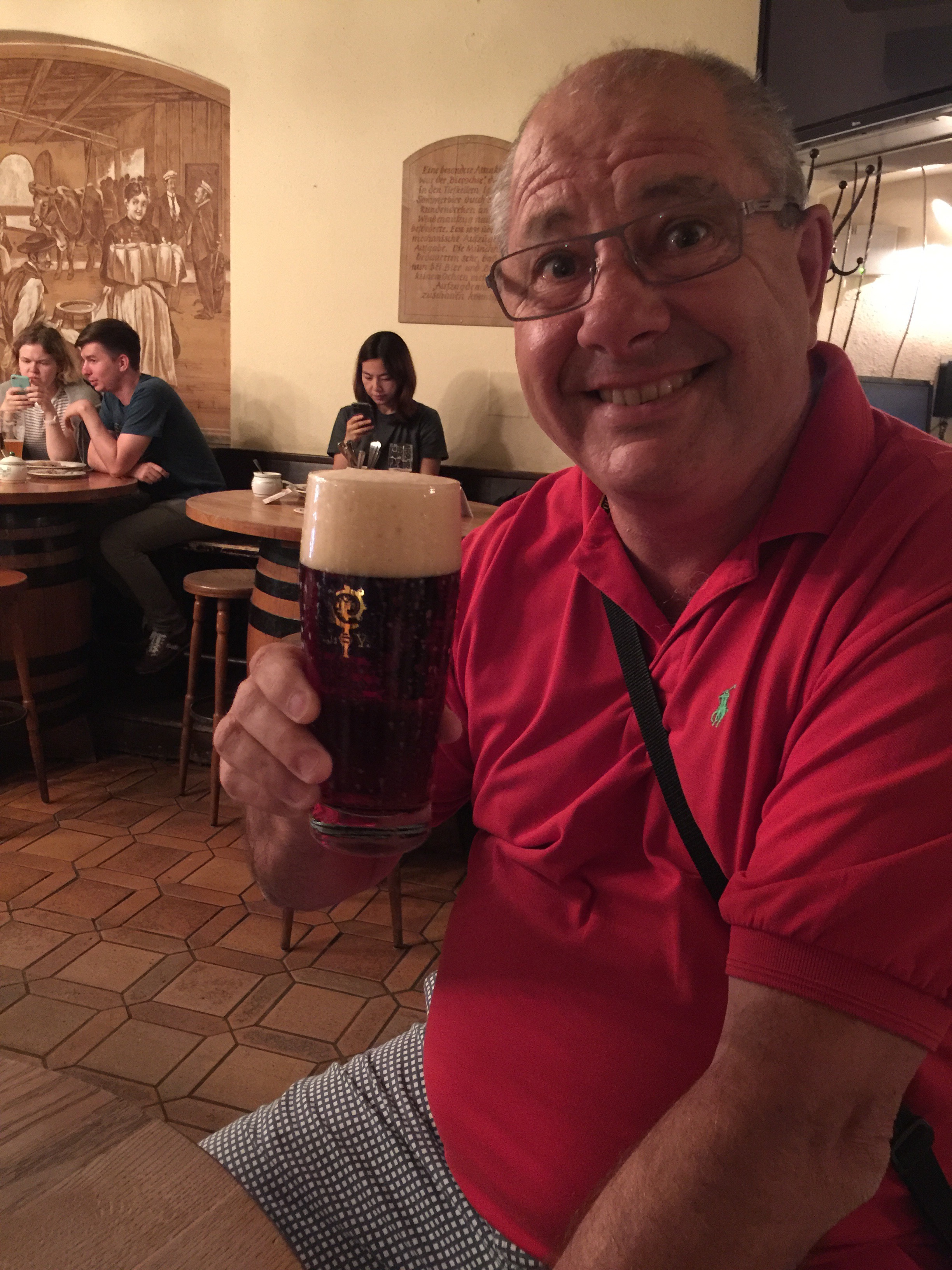 We walked to the Augustiner Brau Munchen – which is a huge beer garden selling their local beer and very tempting food (at least for Mick). We decided we would come back another evening for a meal, as we only wanted a snack tonight.