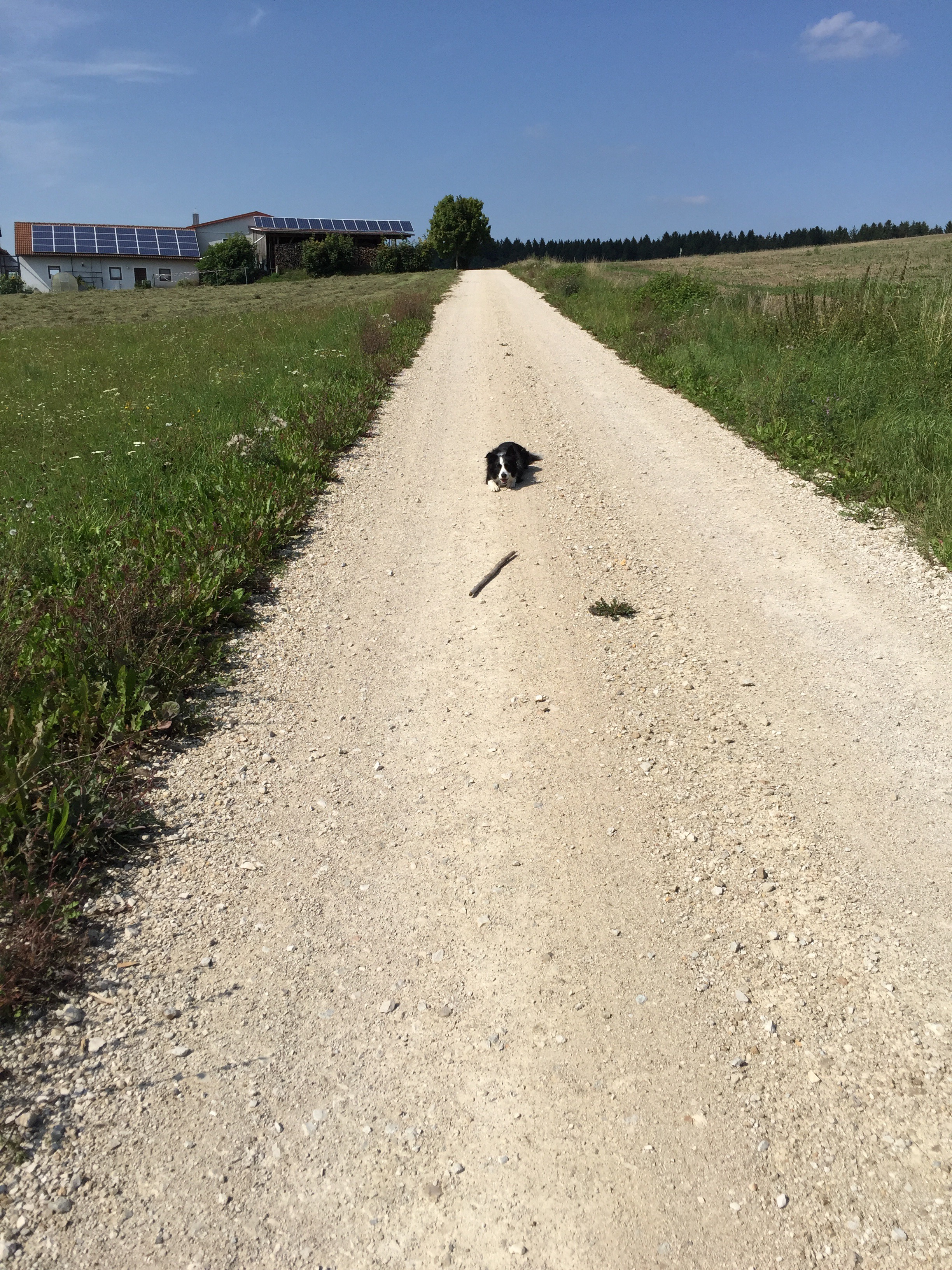 This is how she spends every 15 metres or so of our morning ‘walkies’; waiting for us to throw her a stick.
