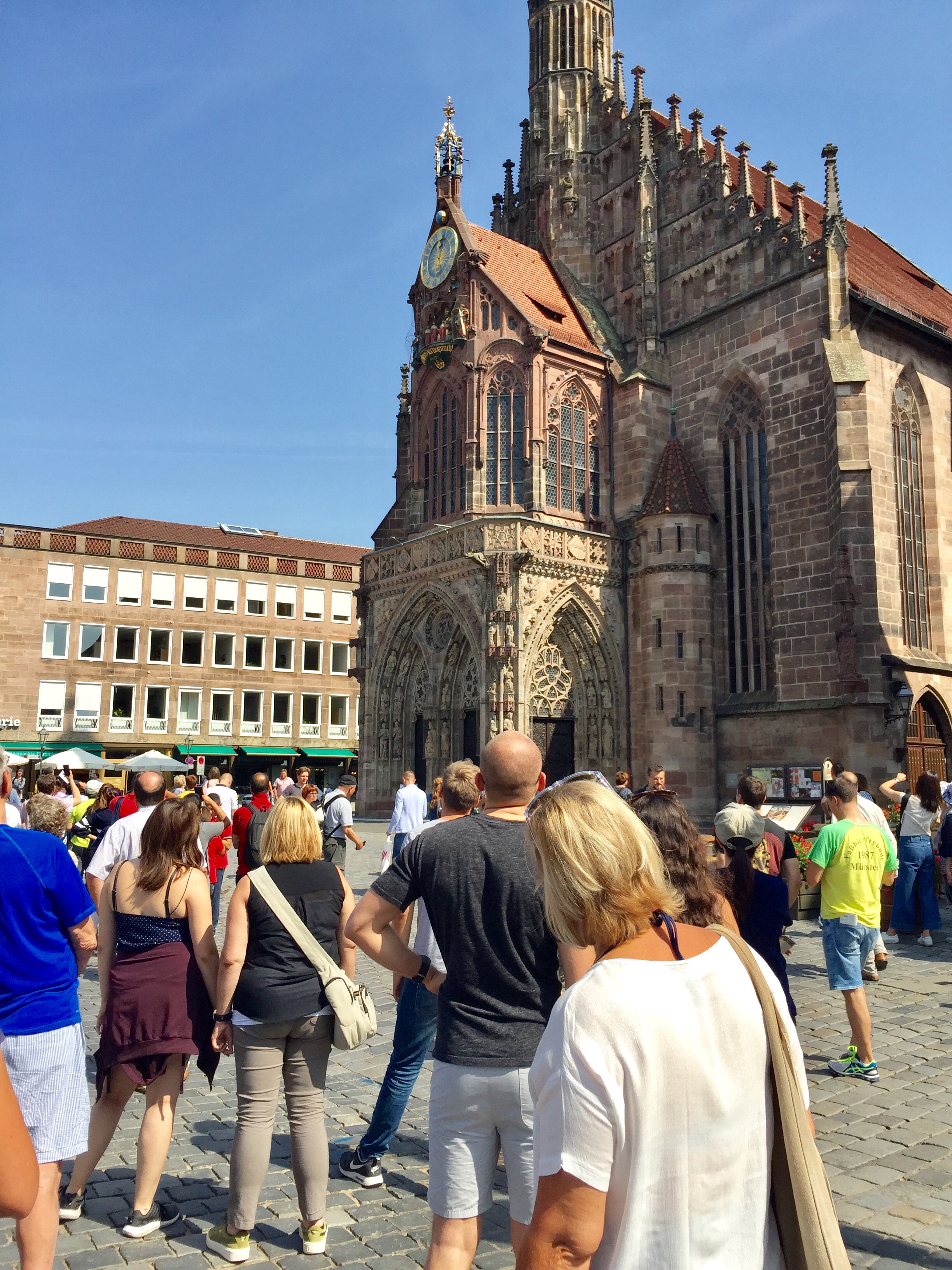 Just by chance, we found ourselves outside the Church of Our Lady at midday to enjoy a Glockenspiel display. No where near as grand or popular as Munich’s.