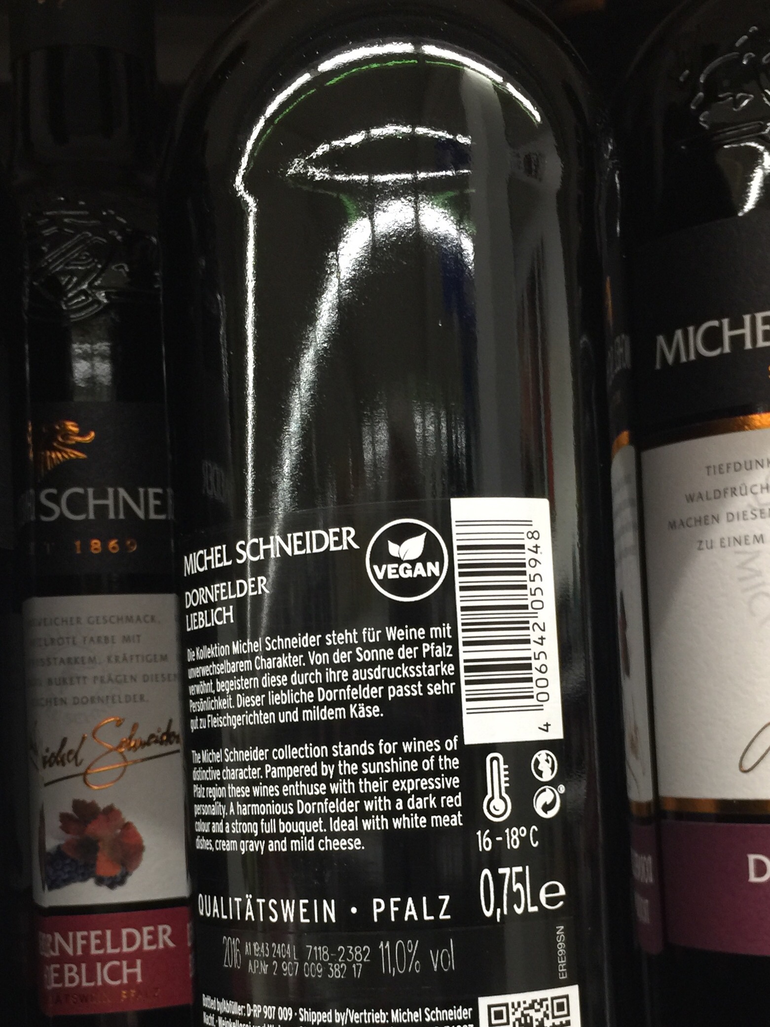 We stopped at a large supermarket on our way home and look what I spotted on the back of a bottle of German red wine.
