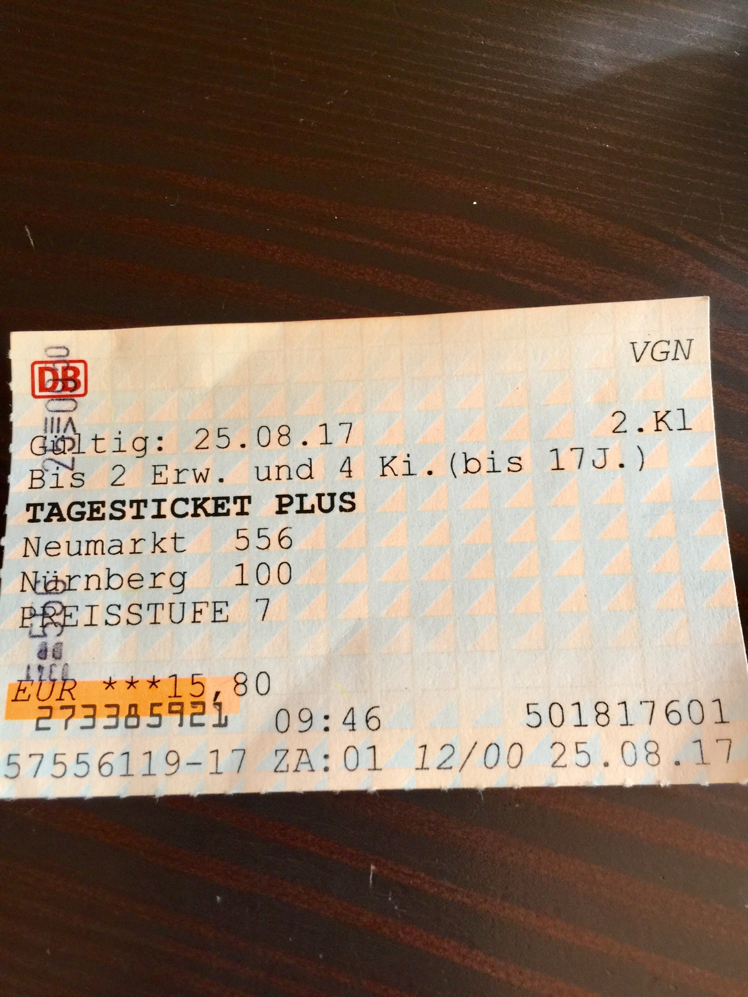 Our hostess had shown us how to get there only a few days ago but neither of us could remember. Obviously we did find it in the end, and I was successful in buying us all-day tickets to Nuremberg by speaking only in German. I was pretty pleased about that too. Our ticket was for two adults (2 Erw) and four children (4 Ki), the only way to buy them, but Mick thought we had to find 4 kids to make it worth our while.