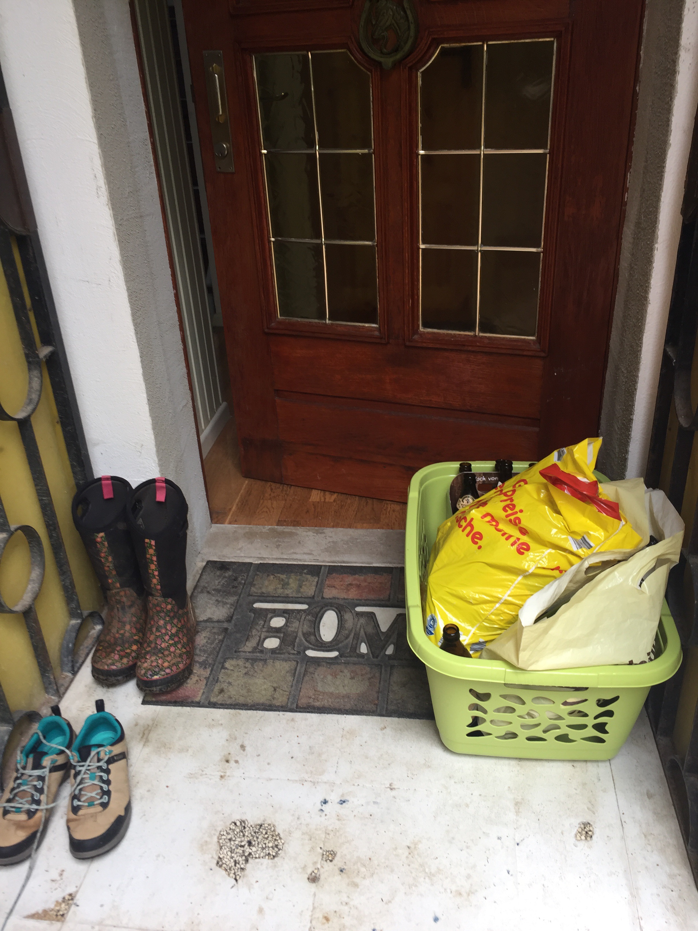 Returning all Mick’s beer bottles to get the pfand (deposit), and to sort the empty wine bottles by colour into our nearest bottle bank.