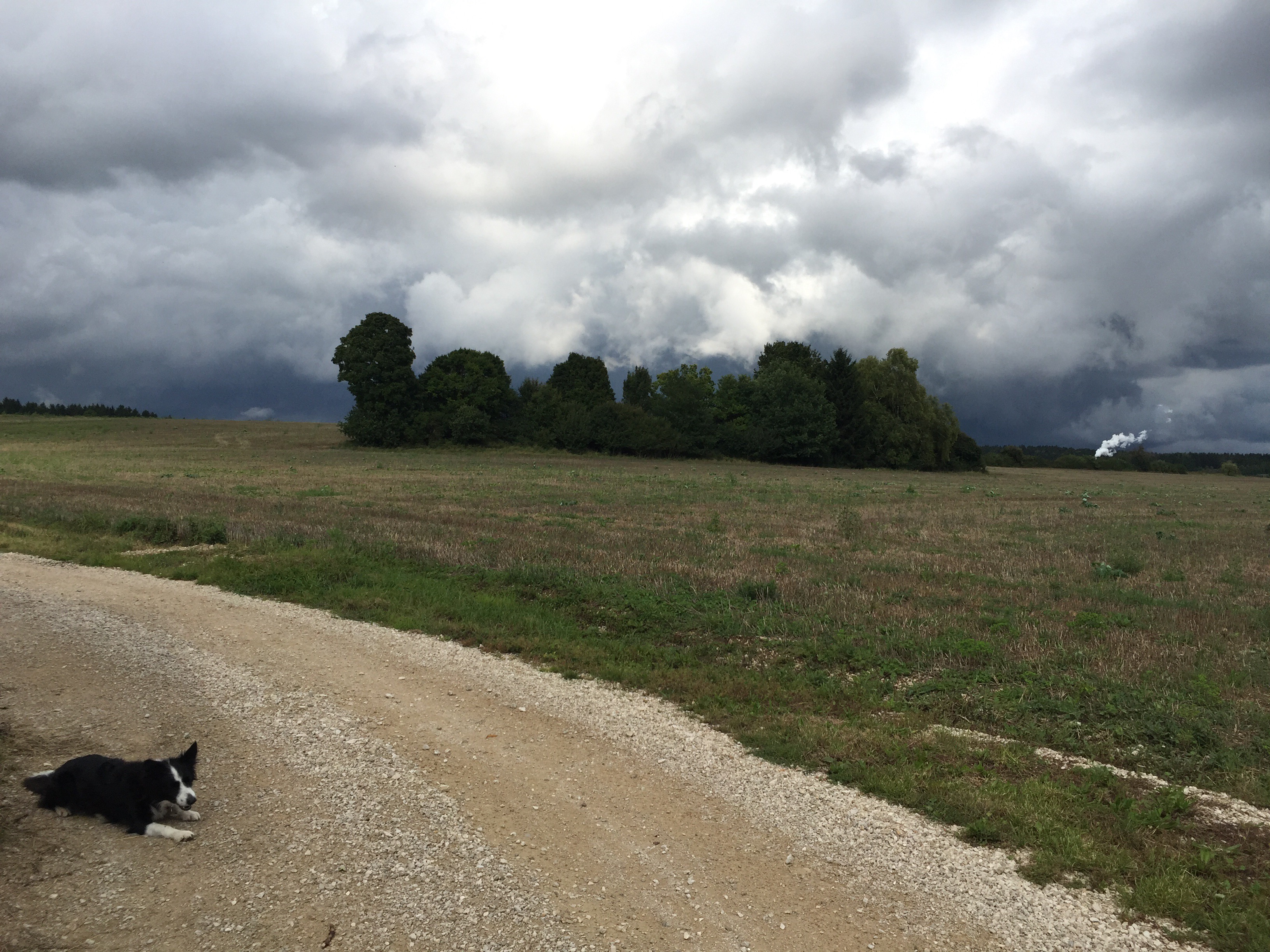 My last afternoon walk with the dog was almost ruined by rain, but we made it home in time.