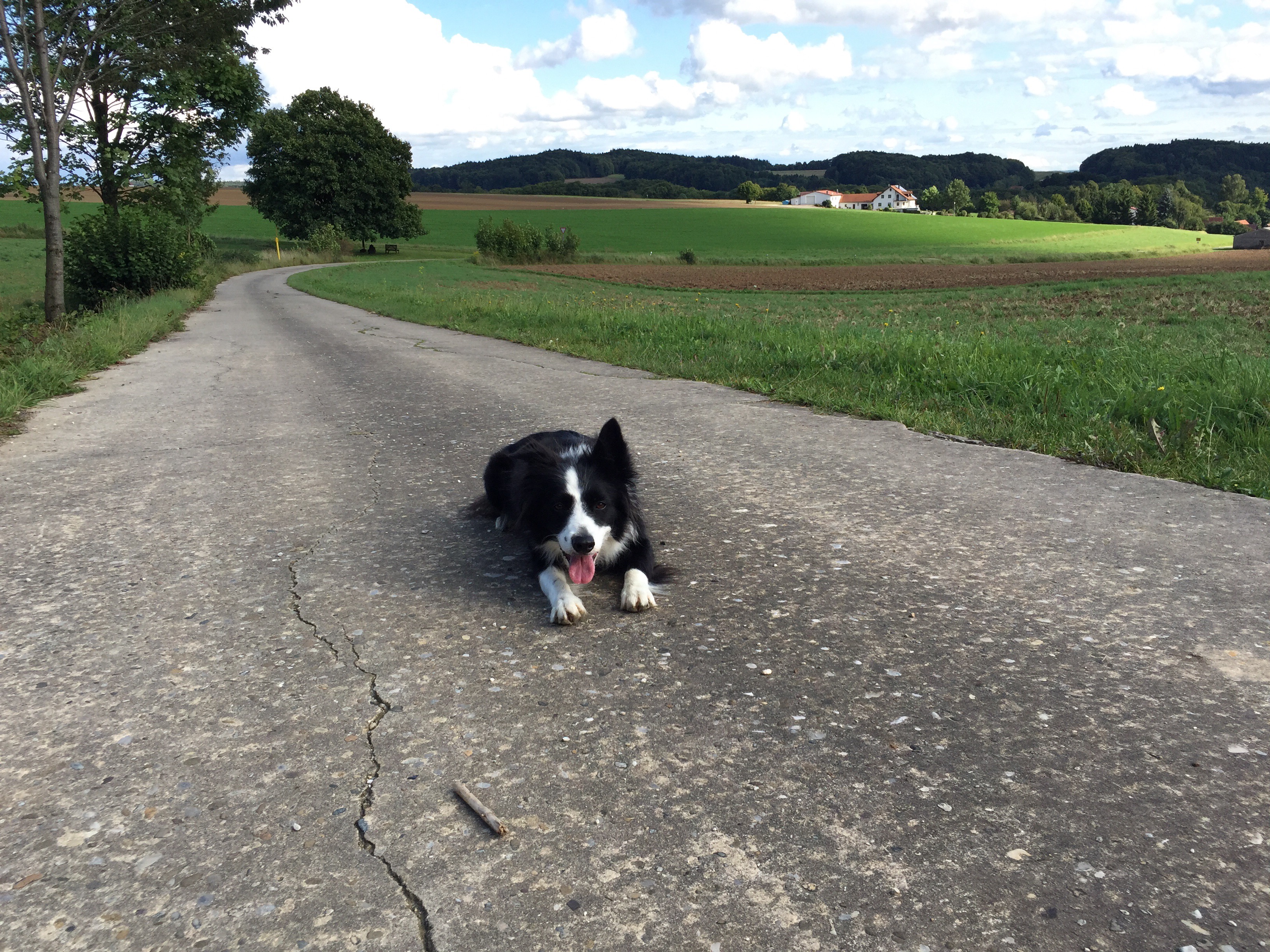 Can you see her stick just in the bottom of the photo? She plays this game for the full 30-40 minute walk in both the morning and afternoon.