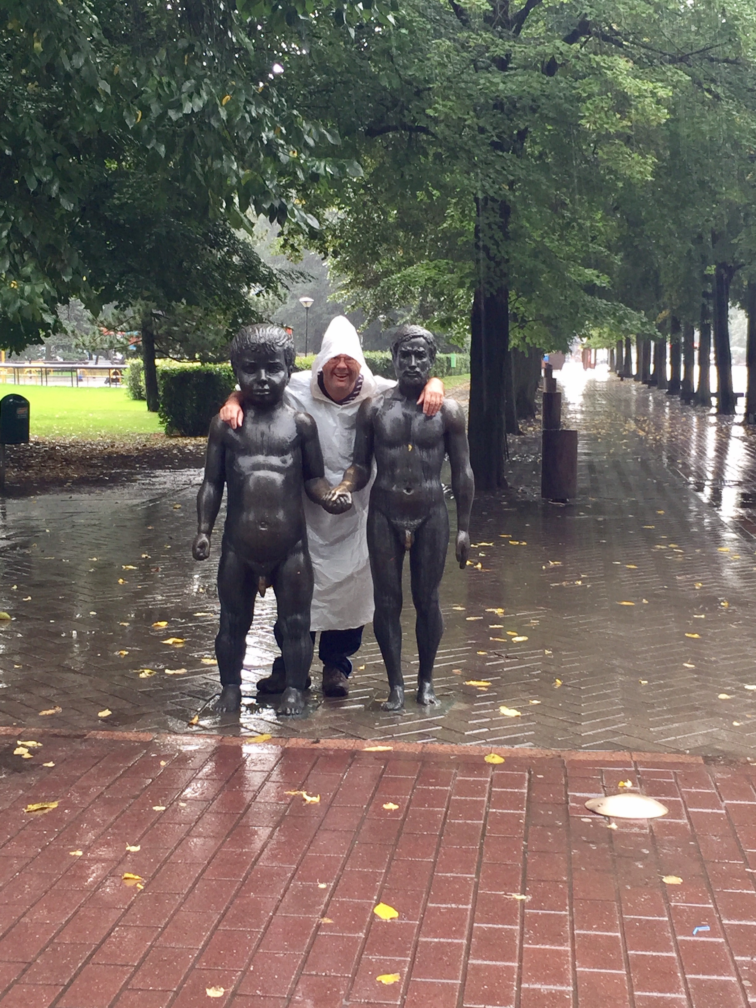 No, not because of this well-known statue – known as the Father and Sons’ sculpture, but mainly because of the wet weather.