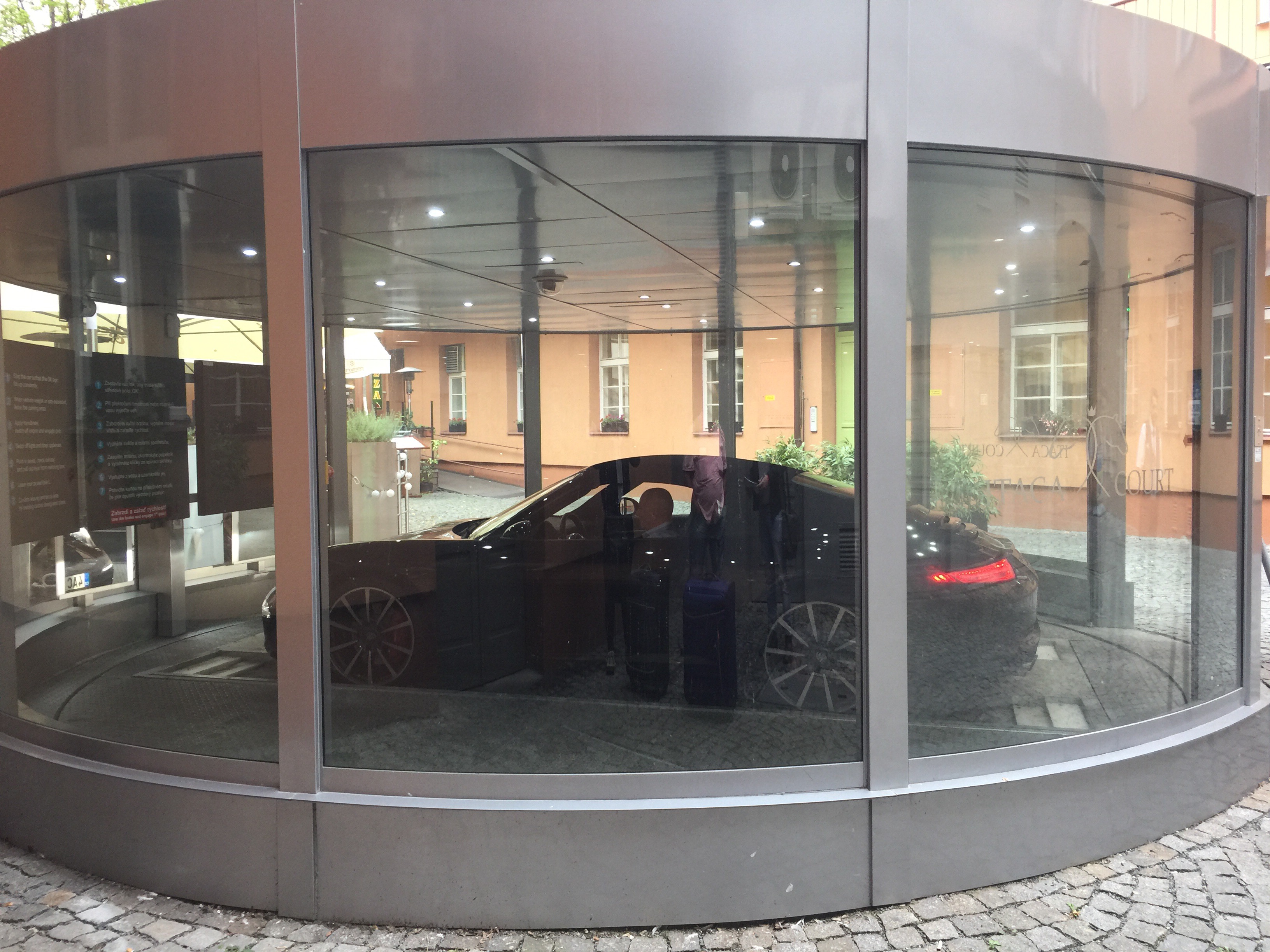 This guy next to Mick looking at the car lift was the supposed security guard who’d let us in.