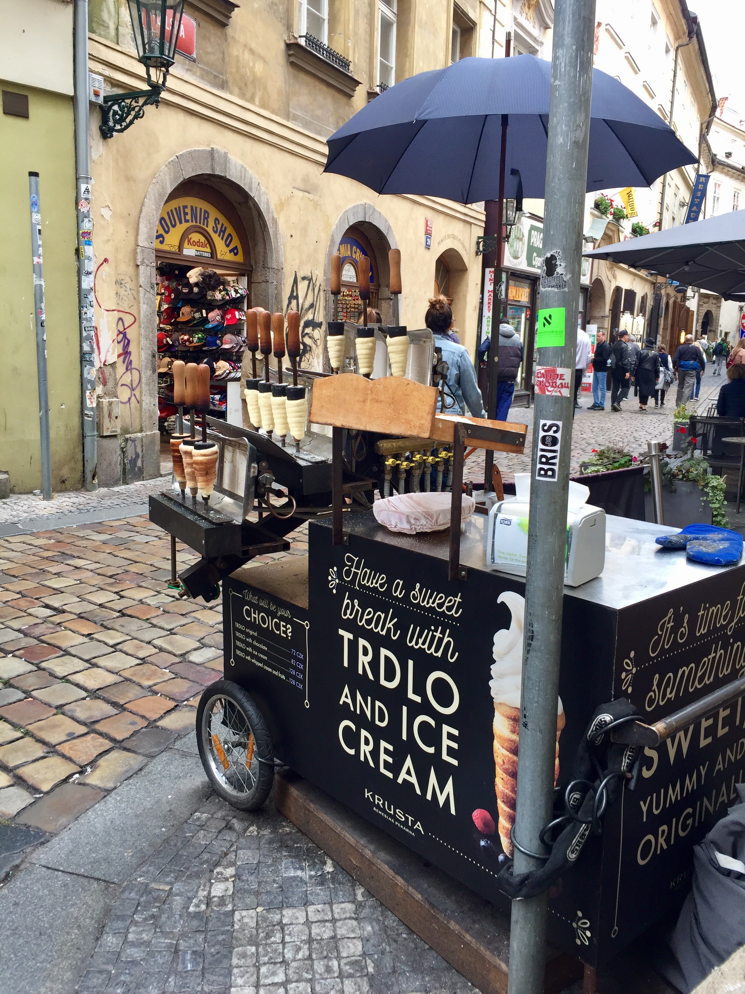 I will try one of these before we go. Every second person we saw today was. They look like cinnamon coated cones filled mostly with ice cream, but you can also get savoury fillings.