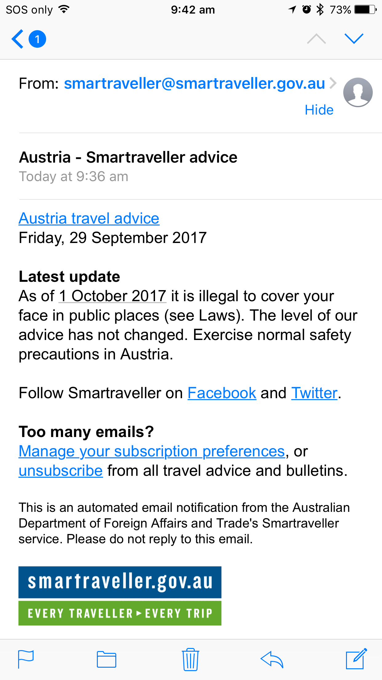 I mentioned in an earlier post that I’d advised the Australian Government of our travel plans.
