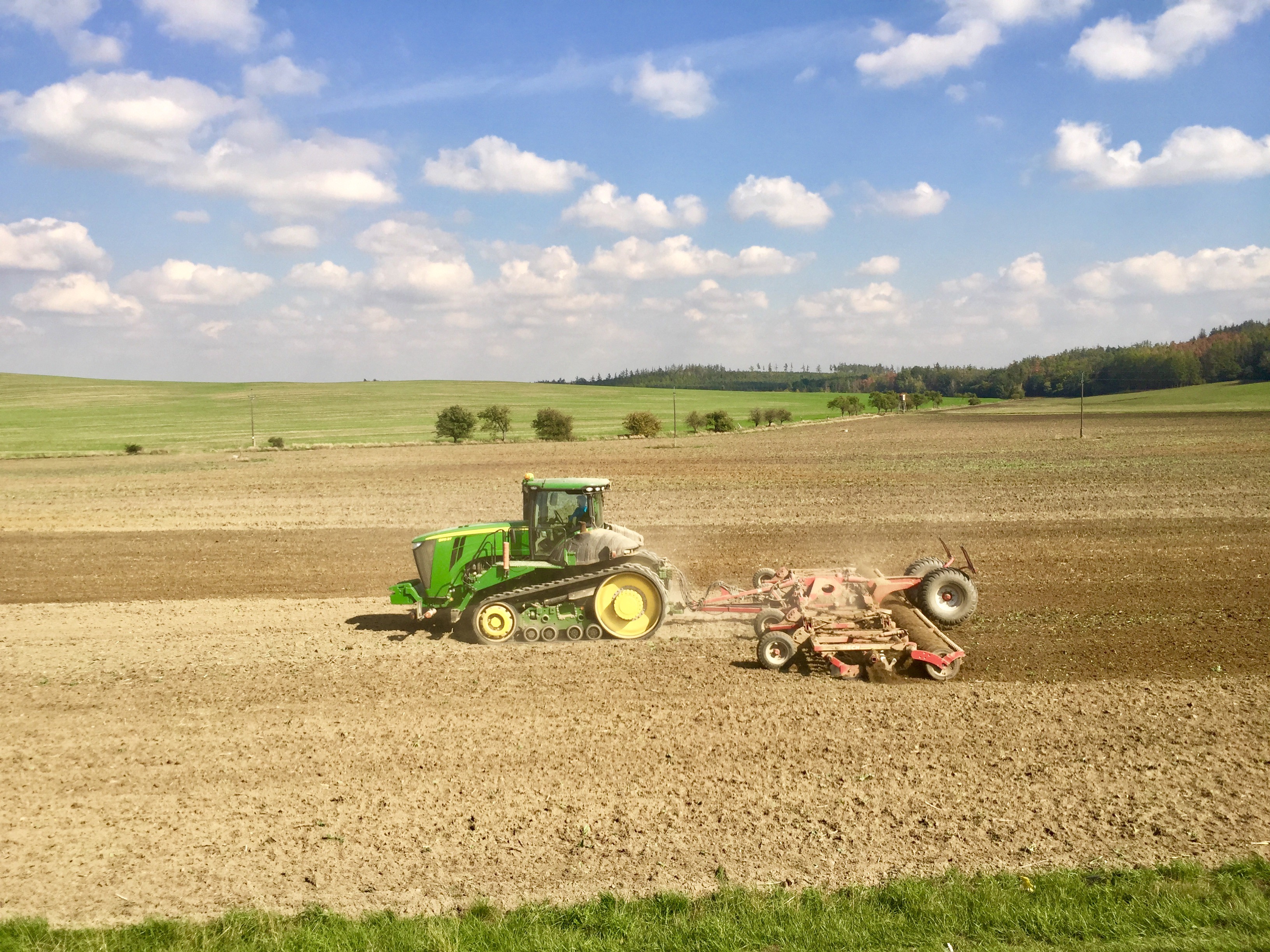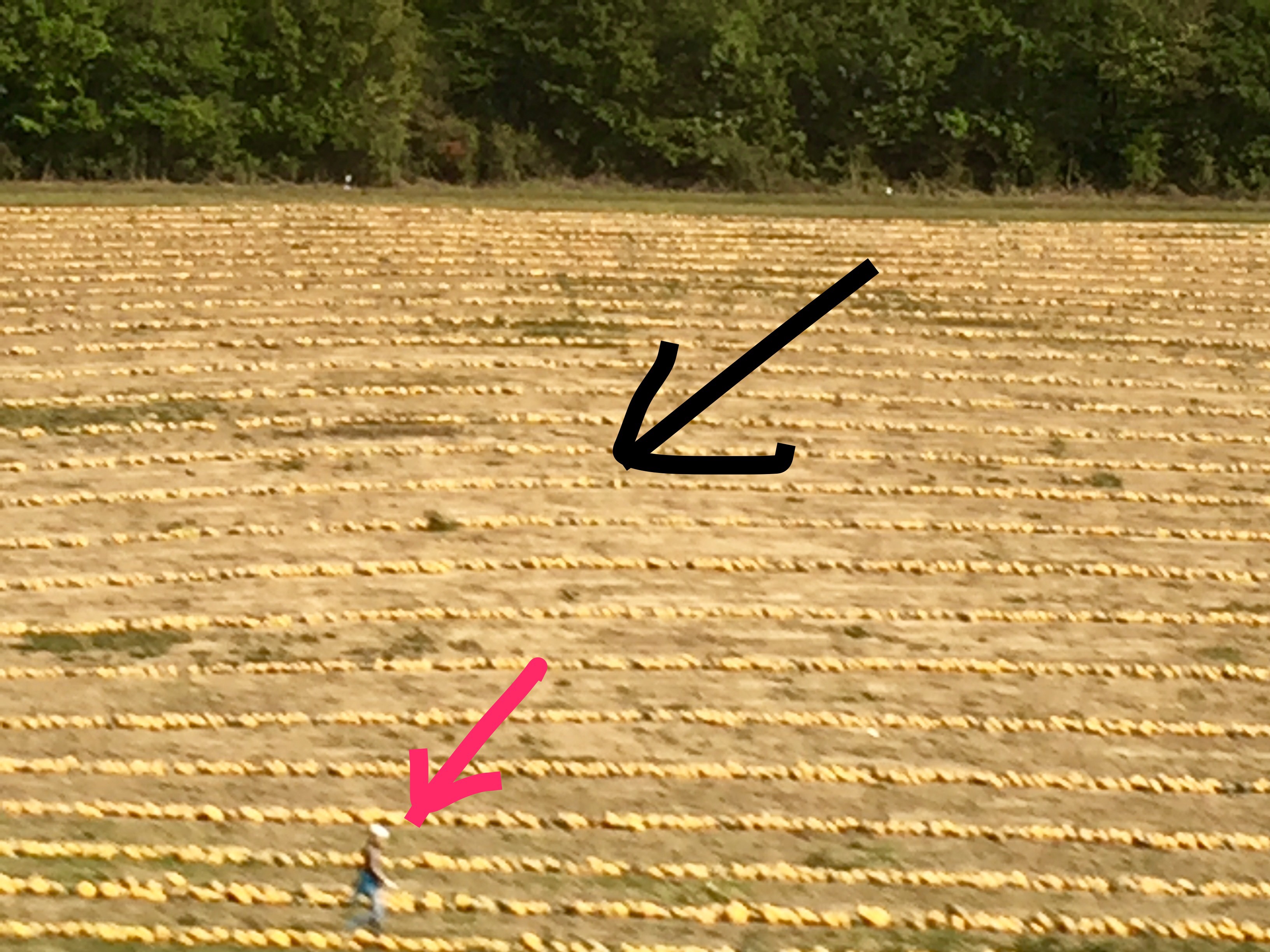 Almost immediately we were in Austria you could tell the difference. No piles of hay dumped in paddocks. Everything was orderly and neat. Even the rows of freshly harvested pumpkins. The red arrow is pointing to a person walking nearby.