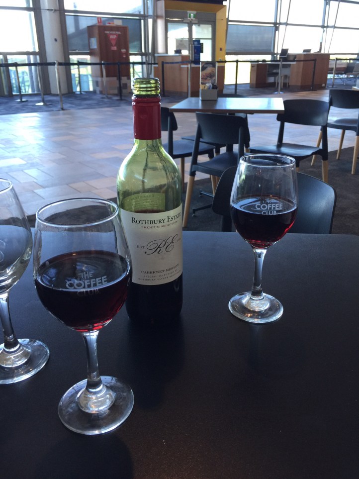 To celebrate, we have shouted ourselves a little treat while we wait to board. Notice the glasses!! We bought the bottle from the Coffee Club. That was a shock to me.