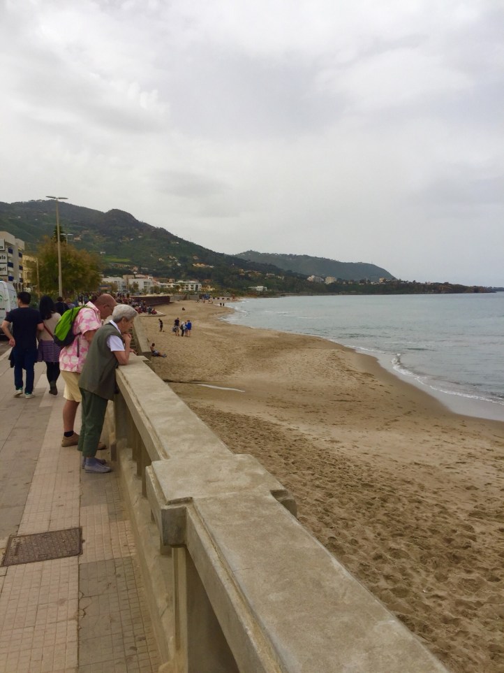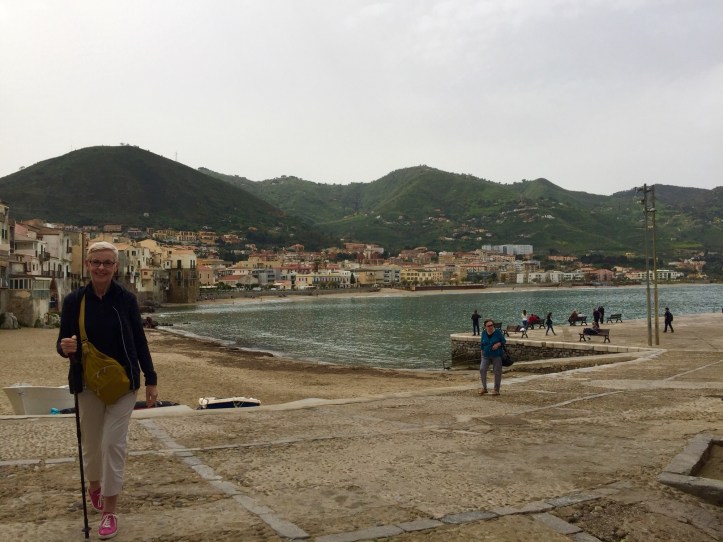 We decided to catch the train to Cefalù today. After catching a taxi to the station, using my newly-learnt Italian, I tried to negotiate a discount for us and Kath, but the ticket man would not have a bar of it. He said we all looked too young. We thought that hilarious, but the tickets only cost us €11.20 each.