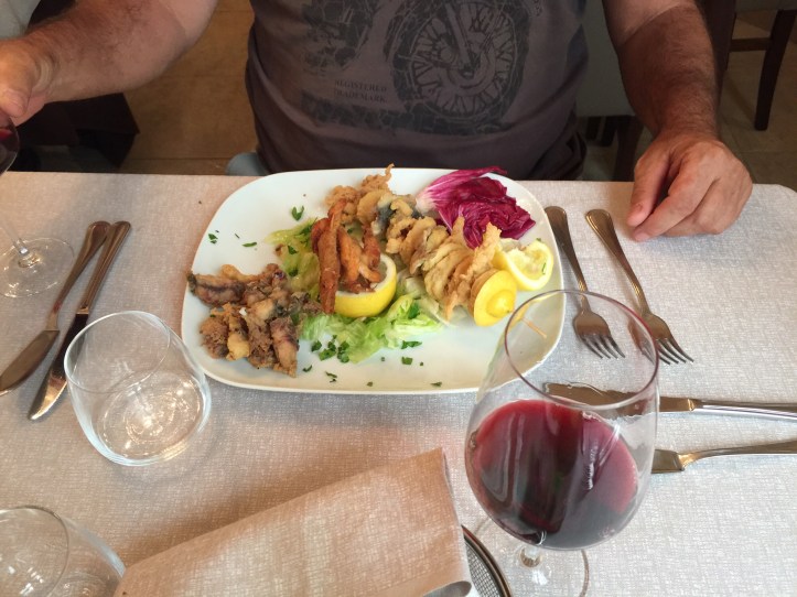 The waiter made a mistake on Edward’s order so he had two courses. It was very nice. Mick had the misto plate of seafood.