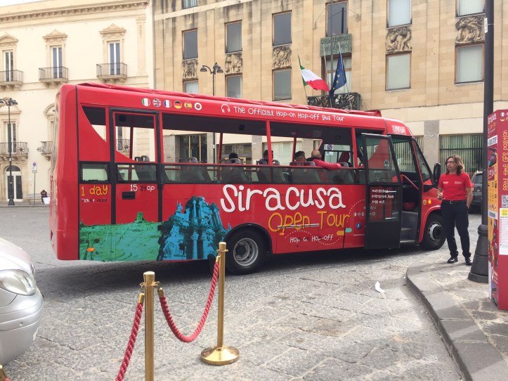 Our plan was to catch this at 10.05am as per its timetable. We’d agreed to meet Edward here and do a full loop of Siracusa sights together. At €5, it was the cheapest hop on hop off bus we’d heard of.