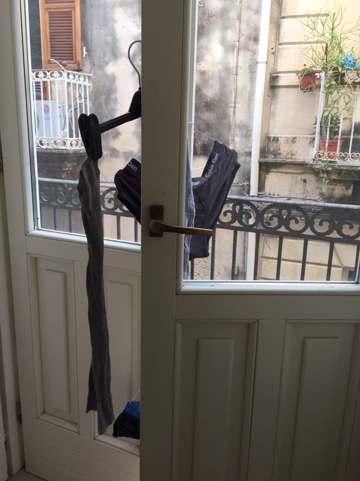 Mick is right into the European way of drying his “intimate” wear.