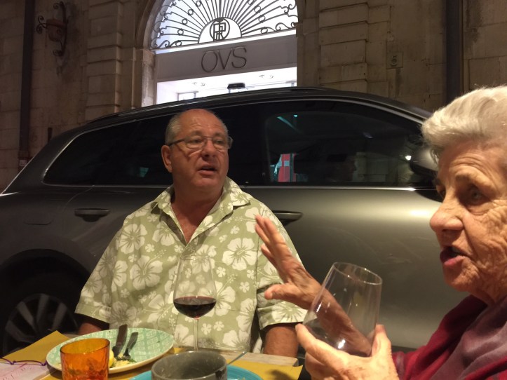 The two restaurants I’d shortlisted weren’t open tonight – Monday!! So, after walking Kath around the streets, we ended up dining just across the street from our accommodation in Via Roma. Edward and his new friend eventually found us as they too had searched out the ones I’d listed earlier.