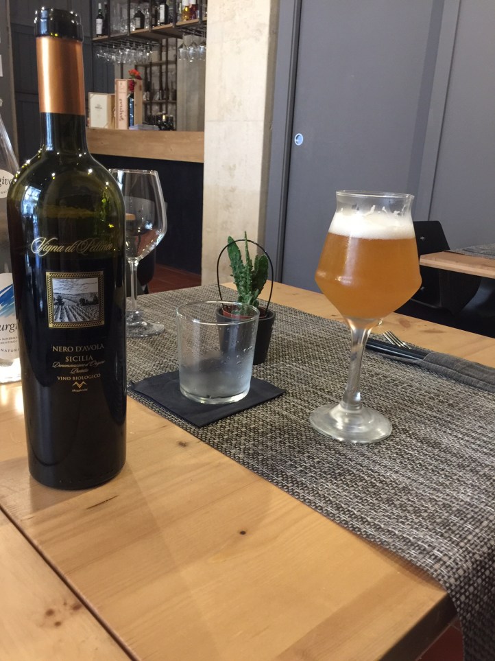 We stopped for dinner at this bar and tried another bottle of Nero D’Avola and Mick tried the craft beer.