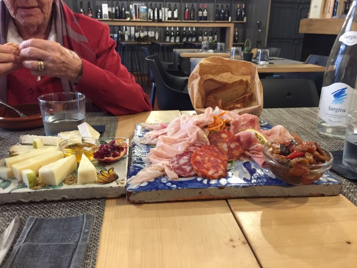 Our shared platter was cheese with honey and shaved meats, including donkey mortadella. Kath and I agreed that Mick could have all of that.
