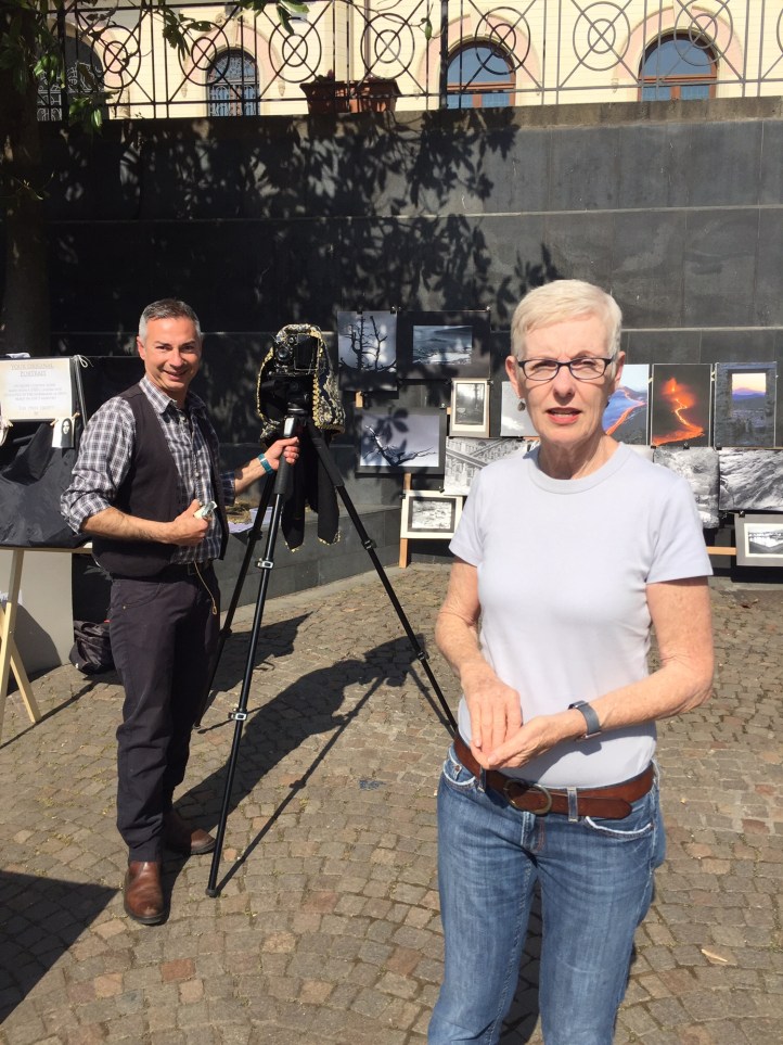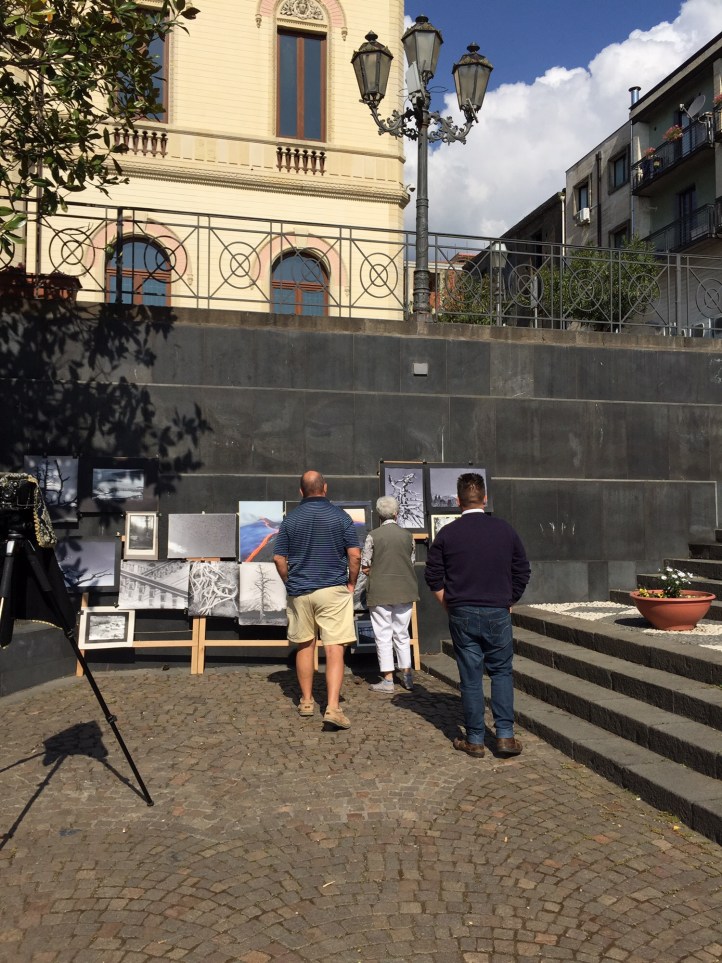 We stopped at the main square of the village of Zafferana (named after saffron which was grown here by the Arabs) to enjoy the view. We met a photographer who was selling his work and also taking photos using 100 year old equipment.