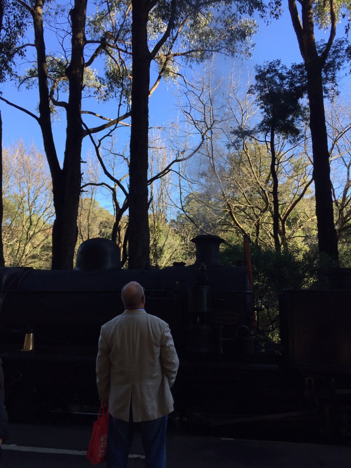 Today we caught a train to Belgrave in order to catch the famous Puffing Billy. Note Mick’s carry bag, it’s actually filled with fruit. Trust me!