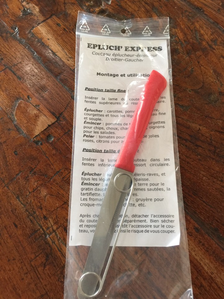 Mick laughed at me for getting conned into buying a vegetable peeler. But the Frenchman demonstrating it was very persuasive. I parted with €10 for this.