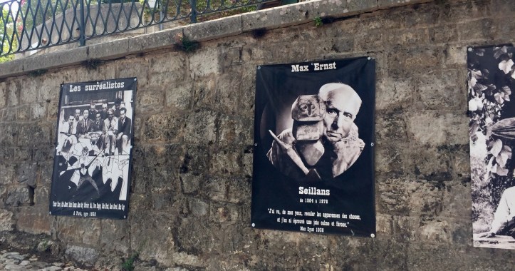 Our first stop was the Office de Tourism where we paid €3 each to ascend about twenty very steep stairs to view some of the works of Max Ernst and his partner Dorothea Tanning. They lived here in Seillans from 1964 until his death in 1971. She later donated a lot of his lithographs to the village.