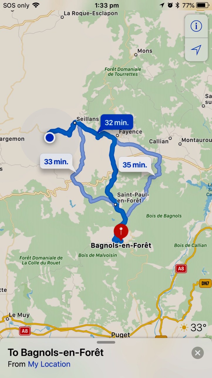 A “borrowed” photo again, this time of Bagnols-en-Forêt- same reason as before. Quite stunning.