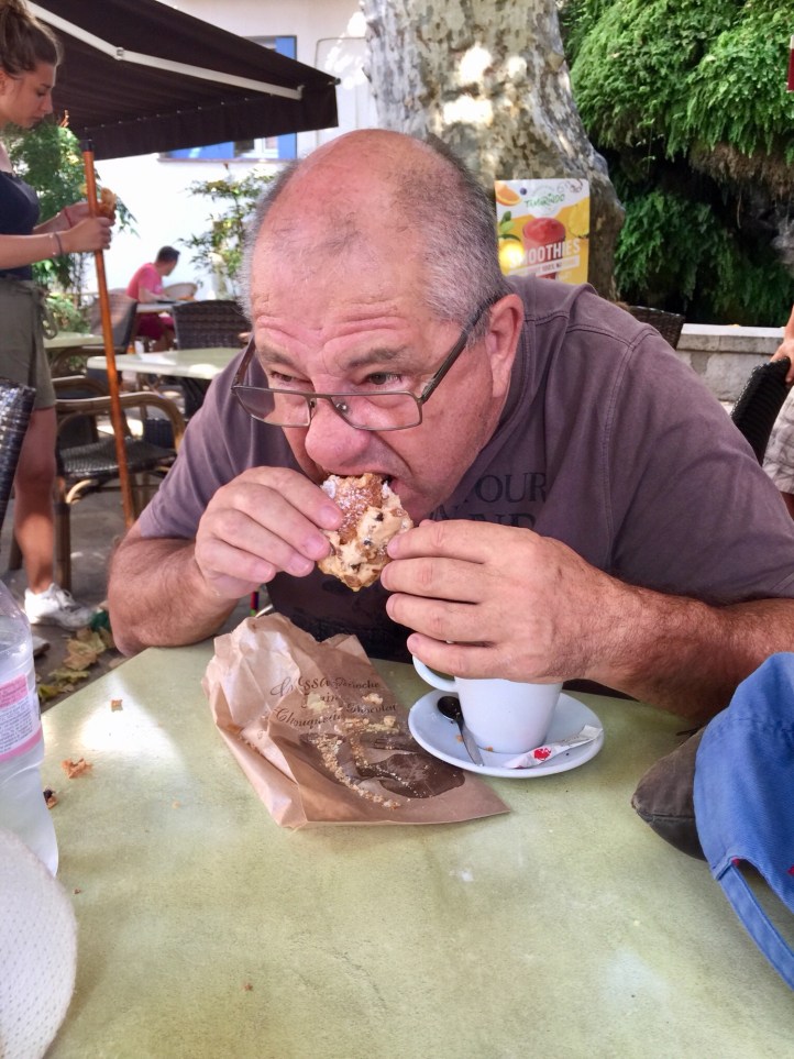 We stopped in here, and instead of a croissant something else caught Mick’s interest. It was called a Sacristain.