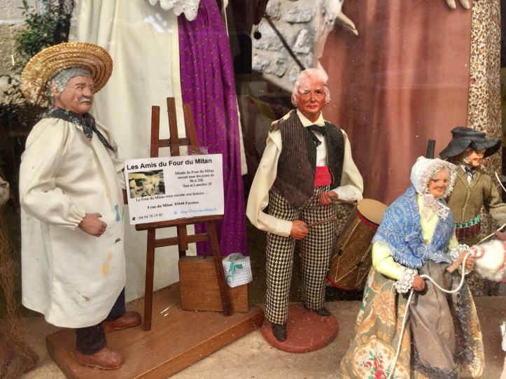 We eventually found where the communal oven, known as Le Four du Mitan, was. But the ‘open-every-day museum’ was closed and all we saw were these small replicas of people from the time it was used, in the front window of the museum.