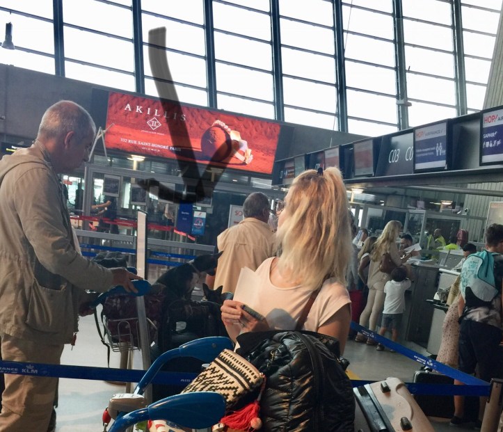 We love the way the French love their dogs. Check out these two cuties in the line up next to ours, waiting to board their flight.