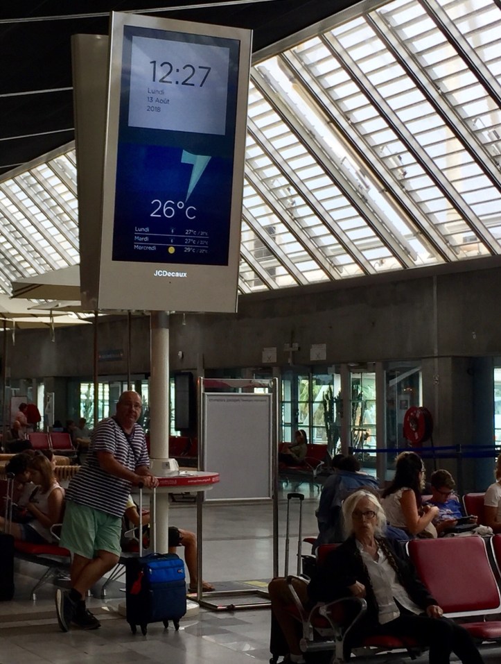 Our host was flying (to Frankfurt) out from Nice at the same time as us this morning, but the usual 50 minute trip to Nice Airport from his home took a bit longer because it was bucketing down.
