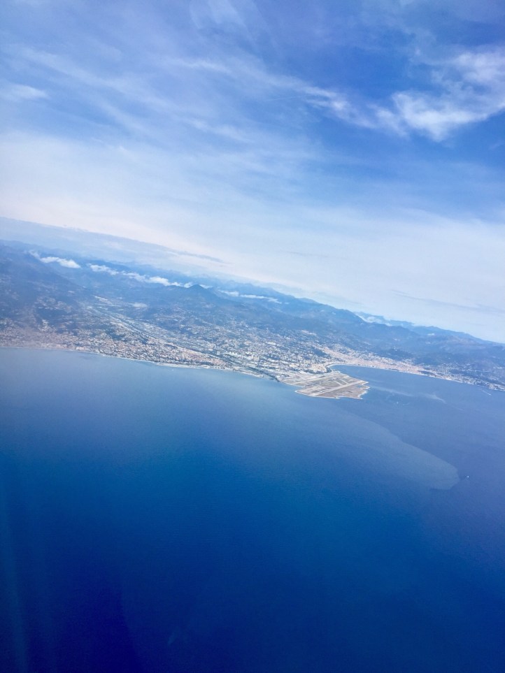 Our flight left 30 minutes late but by then, the sun was shining. Look at the view of Nice we got as we took off.