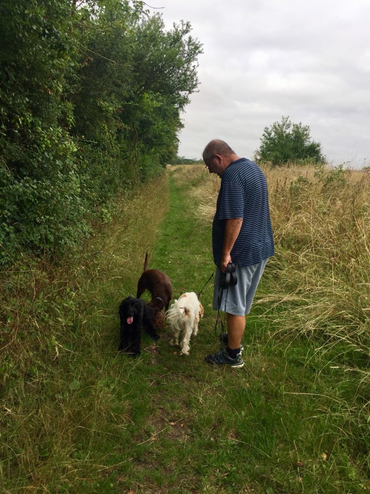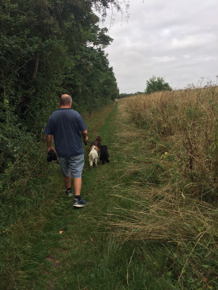 The dogs were each pulling hard on their leads excited about their walk. Mick had two and I had one when one of Mick’s dogs broke free of her lead (we’d connected her lead to her name tag and not the correct ring on her collar). She ran straight across the road, heading on what was obviously another walking trail she knows, just as a car came along. Thankfully it wasn’t going too fast and the driver slowed down, missing the dog quite safely. But it gave us a very nasty scare.