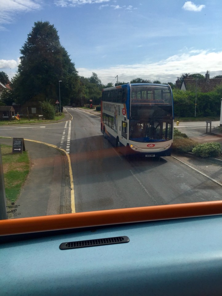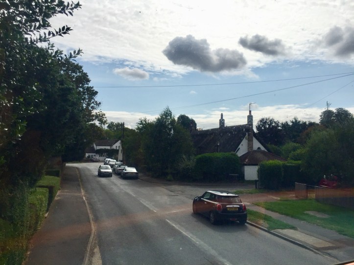 We passed, very carefully, another double decker bus in one of the outer villages of Cambridge. I’m not sure which one. Unlike the next photo, which was taken as we drove throug Grantchester, for all the Grantchester fans – you might recognise something from the TV show. I didn’t, but I did like the clouds.