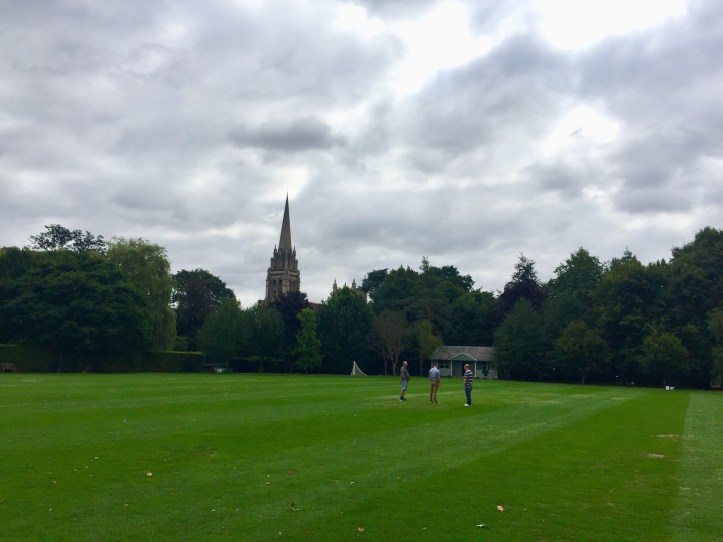 Today is the annual cricket match at Downing College between The Fellows and The Staff. Our son, in his first match last year, took a few catches and wickets, and made some runs, to help the Fellows win the match.
