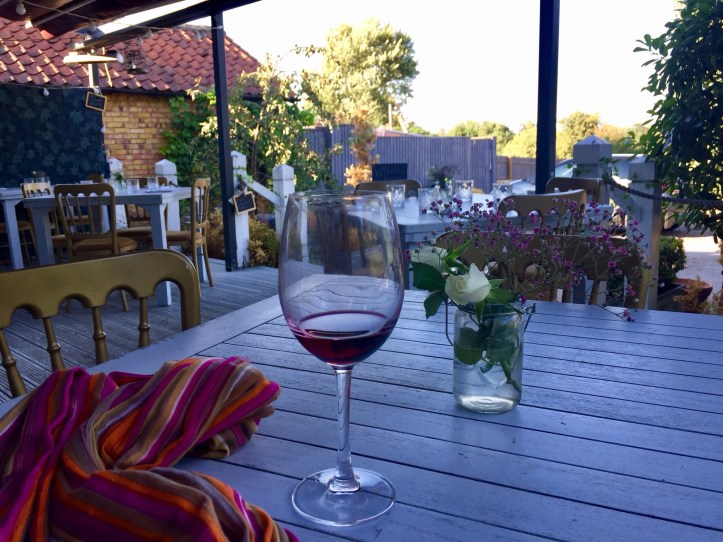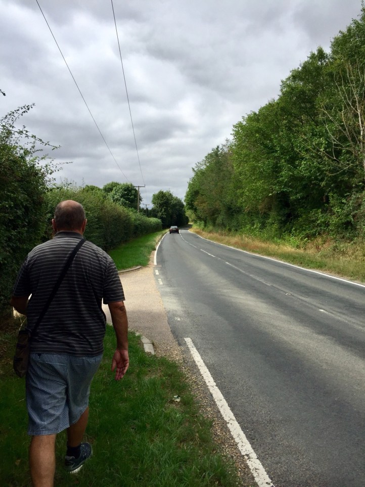 … but the promise of a pub lunch was too much to pass up. So, on we pushed until we reached what Mick was sure was an old Roman Road, because of its straightness, the Old North Road. The traffic became pretty scary and there was no footpath on either side. It was becoming too dangerous, but Maps indicated we only had 250m to go, and then…