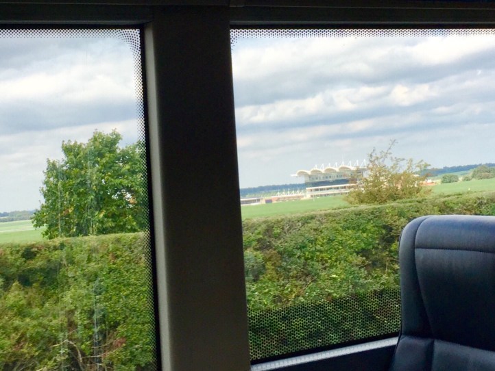 It wasn’t until we were leaving, this time on the bus that took the more direct route, did we get to see the racing track, and lots of training tracks. It was quite picturesque, but from the bus, the photo isn’t great.