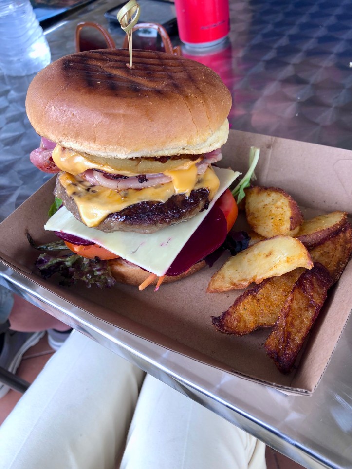 It took 75 minutes to arrive at Amamoor, where the steam engine was turned around. We had 45 minutes in the tiny village which comes alive, and is kept alive, due to the regular appearance of tourists on this train trip. We had been told that “The Works Burger” was a must. So, of course we ordered one each for an early lunch.