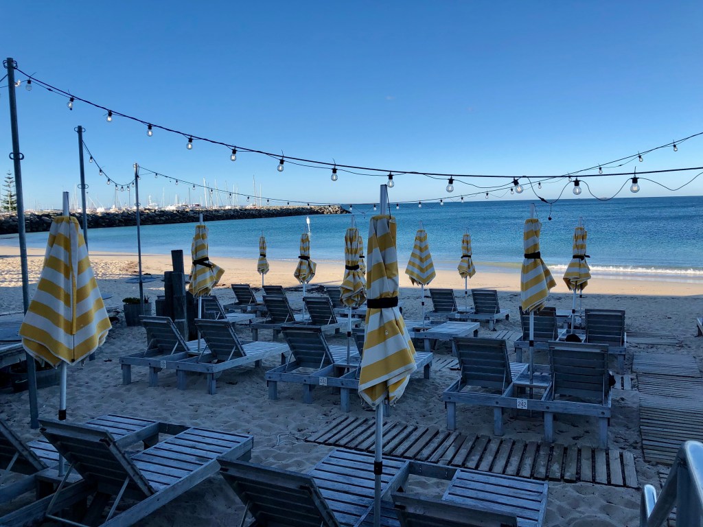 A short walk from our accommodation is the Fremantle Fishing Boat Harbour where we found several seafood restaurants and bars, but also a small beach. I took this next photo early this morning – hence the lack of sunbathers, but I’m sure it got busier later in the day.