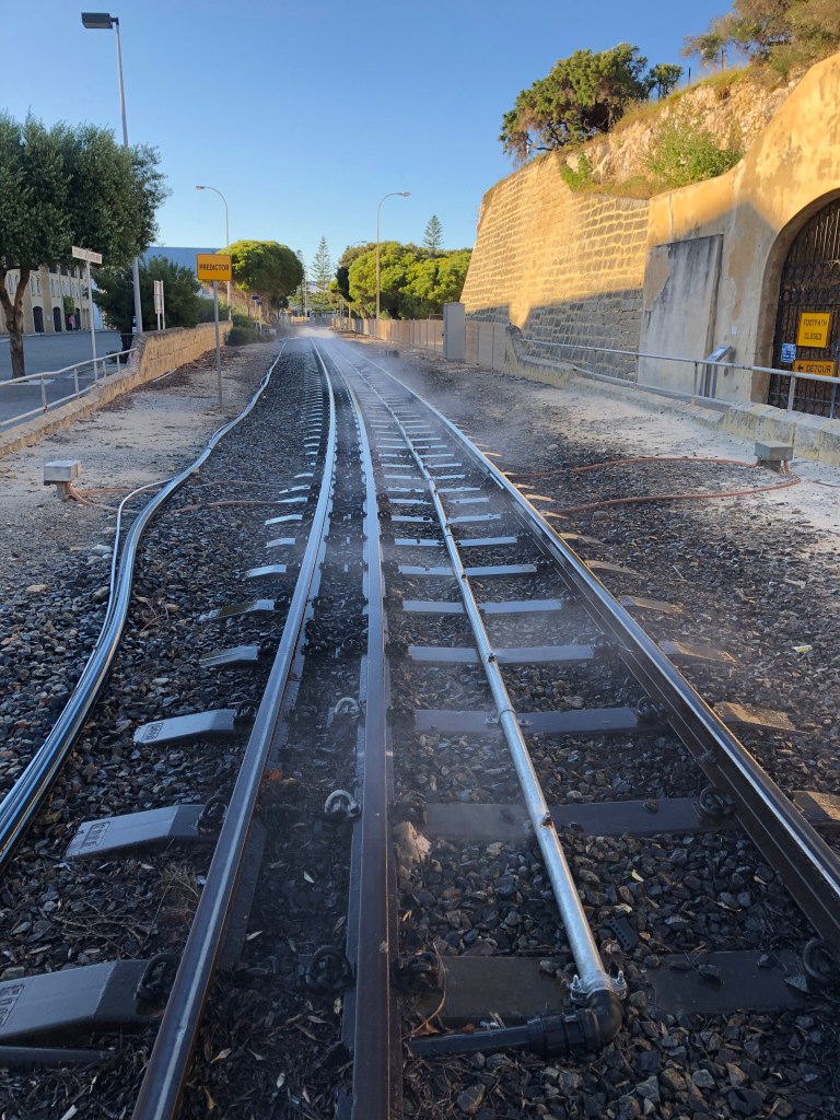 Alongside the harbour is a small railway track – I am unsure if it is still in use today, but it is the very first time I have seen a sprinkler system on a railway line. I assumed it was to keep down any dust.
